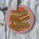 Stack of books with covers in pastel shades of orange, lilac, green and pink.