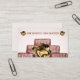A stack of chocolate bars on a taupe background, accented with gold roses, creates the perfect business card for a candymaker, chocolatier, or sweetshop. The back is the same taupe as the front, with space for business information. Could also be used as an enclosure card or rewards card.