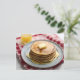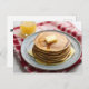 This is an AI generated design. I wanted it to be a stack of pancakes with a pat of butter on top and covered in syrup, the plate I wanted it to be on red chequered table cloth. The glass of orange juice just showed up.