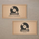 A vintage-style business card with an aesthetic evoking nostalgia and a love for analogue music, and featuring a stack of vinyl records in a warm, muted sepia tone. The topmost record has a faded label displaying customisable "Rock & Folk" text.