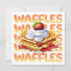 Yummy stack of waffles covered in whipped cream and strawberries. Cute for foodies and restaurants.
