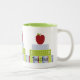 School teacher's coffee mug, with colourful graphics of stacked books with a red apple on top. Black text, on the books read Teacher. Makes a great gift for your favourite teacher. Great for home or school.