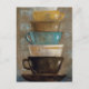 © Silvia Vassileva / Wild Apple. Coffee cups stacked on top of each other in earth colours. The word Latte can be seen on top of the image.