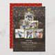 This flat holiday card is perfect for any family looking to send an elegant, yet rustic holiday photo card to their loved ones. This design features rustic wood with a snowflake overlay as a background. On top of that is an arrangement of 6 square photos with a thin gold border stacked in a triangle with a gold star at the top to look like a Christmas tree. Under the photo tree is your Christmas greeting that reads "Merry Christmas with love from" and then your family name and date.