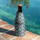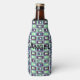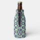 This bottle cooler has a mid-century modern design of rectangles stack three thick in cool colours of blues, greens, and purples on a field of white. Keep the name and/or font, change either, or delete them completely.