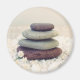 Magnet with a photograph featuring rocks stacks on top of each other. Surrounded by loose white rocks and little white flowers.