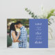 A minimalist, typographic save-the-date. Choose "customise further" to select a different background colour for the front or back of the card.