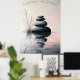 A minimalist painting of smooth zen stones beside a gentle stream, perfect for fostering calm and balance in any relaxation or meditation space.