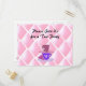A cute design featuring stacking teacups in bright colours on a pink diamond background. Add your information on the back as desired.