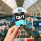 The staff name badge can be customised with your event name, date and venue information. The concert crowd photo may be used or replaced with your own photo. The QR code on back can be customised to direct to your website.