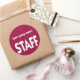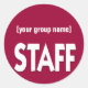 Recognise STAFF at your event, organisation, or business with this badge. The word STAFF is large in white stylised letters with a black shadow to make it stand out. Just change to your custom text or group name. Change the background colour if you like (customise/edit/background). Great for conference, convention, show, fair, or business of any kind.