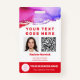 Great for any care worker, in-home care business or self-employed person. Easily edit this template to upload your own ID Photo, Vaccine QR Code and personal info. Plus 'kindly return' information on the back. Unique abstract art with watercolor shades in pink, purple and gold. Staff Photo ID Vaccination QR Code Red Badge.