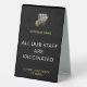 Inform your customers that your staff or employees have been vaccinated against covid-19. You will personalise with your business logo and business name. All text fields can be edited to suit your requirements. Add a personal message at the bottom. The printing is on the front and back.