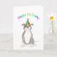 Ain't no party like a Staffie party! This happy Staffordshire bull terrier has donned his rainbow party hat and is ready to rock... Make someone's birthday with this cute doggy birthday card from LeopardyNonsense.
