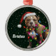 Fun holiday ornament features an American Staffordshire Terrier dog with Santa cap and festive Christmas lights. Add a personalised touch with dog's name or other special message. Great gift idea for dog lovers!