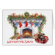 The front of this Christmas greeting card has an image of an American Staffordshire Terrier dog sleeping on a red and white blanket in front of a decorated fireplace, expectantly waiting for Santa Claus. The red text at the bottom says "Waiting for Santa". The text is customisable, as is all the inside text, so you may make it say whatever you'd like. Cute! See more Staffordshire Terrier dog images, along with dozens of other dog breed products, at Dog Village.
