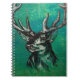 Black & White ink drawing of stag head on a monoprinted green backgroud