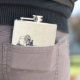 The flask itself is fine. It’s a cheap flask, obviously bought in bulk, however am prepared to overlook that. Given that it is a personalized item, I would have liked to have seen gift boxing instead of the generic packaging. Terrible printing, and/or quality. It’s a cheap, tacky vinyl. It is not cut straight and is also applied in a way that it is overhanging the bottom, causing the glue to catch on items and it will eventually roll and tear, damaging the wrap.