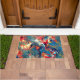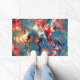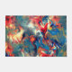 Drawing of spots in shades of blue and red lightly notched that looks painted with satin paint.