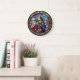 Introducing our exquisite round clock with a unique stained glass design of an angel. This beautifully crafted clock is a perfect blend of art and functionality, making it a stunning addition to any room in your home. The clock face has been designed without numerals, creating a clean and contemporary look that is both elegant and understated. Instead, the face features a vibrant and intricate print of an angel in stained glass style, which adds a touch of sophistication and charm to the clock. This clock is made from high-quality materials that have been carefully selected to ensure durability and longevity. The clock features a precise quartz movement mechanism that ensures accurate timekeeping, so you never have to worry about being late for an appointment or missing an important deadline. The clock is lightweight and easy to mount, making it simple to install on any wall. The clock is powered by a single AA battery, which is easy to replace when needed. Whether you're looking for a statement piece to complement your décor, or simply want a reliable timepiece for your home or office, this round clock with an angel stained glass design is the perfect choice. It is sure to impress all who see it, and will quickly become a treasured piece in your collection.
