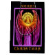 A dramatic stained glass angel, in vibrant jewel colours with a golden halo, announcing the advent of Christmas.