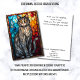 Charming stained glass style flat thank you card. Gold is printed (faux gold), not foil or glitter. This flat card has text templates for rescue organizations to use as thank you notes for donations and/or adoptions. The text can also be deleted, if desired. AI image generated by IveyCottage.