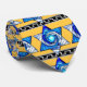 Cool tie features Jewbilee's Art Deco inspired, original digital painting of a stained glass Star of David in gradients of royal blue floating above stripes of silver on a black greek key border offset by a deep yellow base. Difference between this version & the original is extension of the deep yellow background onto back of tie. Great gift for Hanukkah, Bar Mitzvah, Father's Day & more.