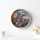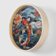 Stained Glass Asian Style Koi Fish and Camellias Clock