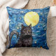 Stained Glass Black Cat Starry Night Cushion
