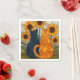 Stained Glass Cats and Sunflowers Art Design Napkin