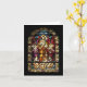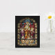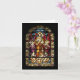 A photograph of a vividly colorful stained glass cathedral window. Blank inside.