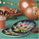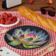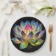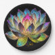 Stained Glass Colourful Lotus Flower on Black Paper Plate