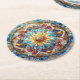 This is a coaster with a stained glass design that is colourful.