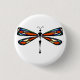 A Hand-sketched dragonfly in prismatic stained glass colours flits gracefully across this button.