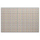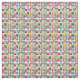 This fabric has a mid-century modern design of a grid of black lines with squares and rectangles in retro colours on a field of white.