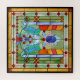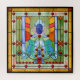 20” x 20” jigsaw puzzle with an image of a stained glass fantasy created with red, orange, yellow, green, blue, aqua and pink stained glass with a floral design, dotted with luminous green orbs and deep red crystal orbs. See the entire This & That Puzzle collection in the HOME section.