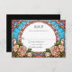 Celebrate the beauty of stained glass windows with this unique wedding reply card invitation. A colourful stained glass frame highlights your RSVP information accented by pretty pink flowers. Perfect for a ceremony held where stained glass windows are prominent. These response cards can also be customised for an engagement party, anniversary celebration, or birthday party. The background colour of the frame and the back of the card can be set to any colour. Available with matching products.