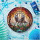 This vibrant design replicates the look of stained glass and features a wolf couple amongst some trees.