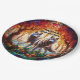 Stained Glass Grey Wolves Pair Paper Plate