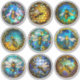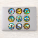 This 9-sticker pack features stained glass honey bees and honeycombs in shades of blue, green, and gold.