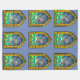 A blanket featuring a kraken done in the style of a mediaeval stained glass window. The design is on a transparent background so that the buyer can pick a background colour that best suits their needs.