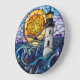 Stained Glass Lighthouse Ocean Sunset Large Clock