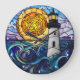 This beautiful clock features a stunning stained glass design of a lighthouse standing tall amidst a swirling, vibrant ocean. A radiant sun sets in the background, casting warm golden hues across the sky. The intricate details and rich colours create a captivating piece of art that also functions as a practical timepiece, perfect for adding a touch of coastal charm to any room.