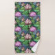 Beautiful bath towel with a seamless lotus pattern in stained glass style.