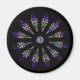 A lovely stained glass pattern adorns this magnet in dominant colours of purple, blue, yellow and black. Twelve abstract feathers circle a central mask to form a spiritual mandala design with a Native American sensibility.