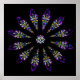 A lovely stained glass pattern adorns this poster in dominant colours of purple, blue, yellow and black. Twelve abstract feathers circle a central mask to form a spiritual mandala design with a Native American sensibility.