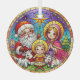 Stained Glass Nativity Scene with Santa Claus, Mary, Jesus and the star of Bethlehem Glass Ornament
