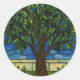 Stained Glass Olive Tree Round Sticker – Nature Art Gift, Botanical Green Blue Design, Mediterranean Eco Label