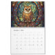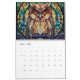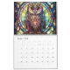 Beautiful stained glass owl calendar features 12 months of stunning artwork featuring beautiful owls with vintage stained glass window settings. Colourful, classic, vintage feel illustrations. Calendar can be customised to start any month of any year. Makes a perfect gift for owl lovers.