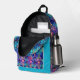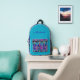 Your child will be the envy of all their friends with this brightly coloured stained glass backpack. The background is done in turquoise with their name on it in an elegant script.   The front pocket and the sides going all around are done in a vibrant coloured stained glass pattern in dark blue, turquoise, light pink, dark pink and purple.  Truly a unique, beautiful backpack that they will want to use year after year!